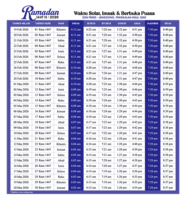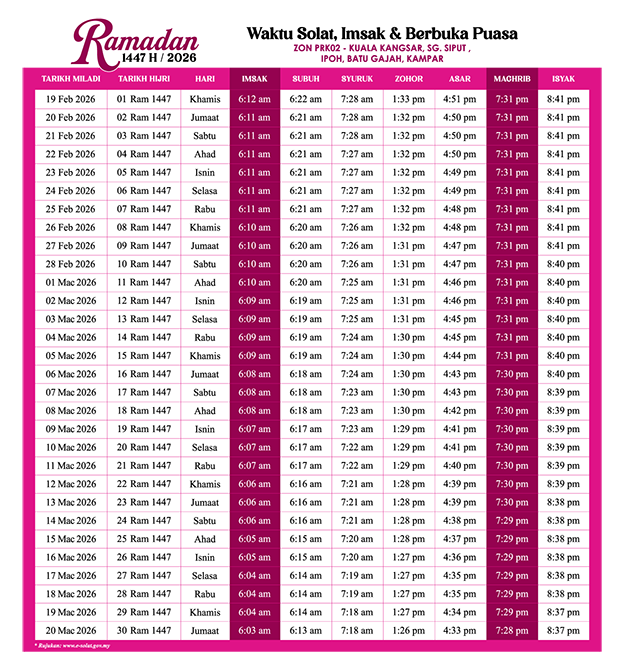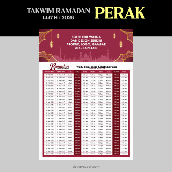 Free Takwim Ramadan Perak (Boleh Edit atau Terus Print)