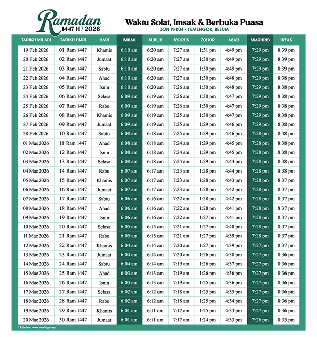 Free Takwim Ramadan Pahang (Boleh Edit atau Terus Print)