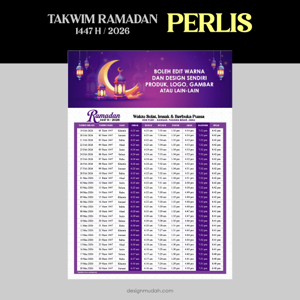 Free Takwim Ramadan Perlis (Boleh Edit atau Terus Print)